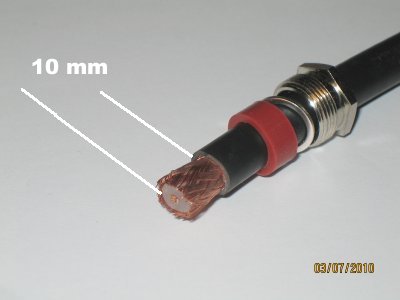 kiristysmutteri ja kumitiiviste kaapeliin ja kuori noin 12 mm kaapeli ulkokuorta pois |